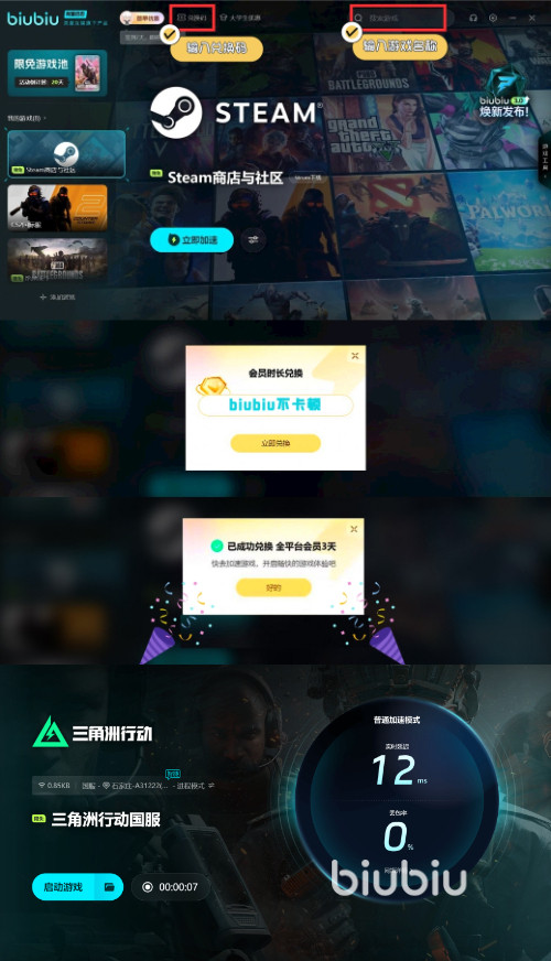 为了让体验的过程更加稳定,小伙伴们可以下载加速器,保证自己的加载率以及丢包率,以免有闪退卡顿的情况。新玩家可以下biubiu,注册有24h免费体验,后续还能兑换3天加速时间,兑换码是biubiu不卡顿,老用户没有兑换过,也是可以照常兑换的。