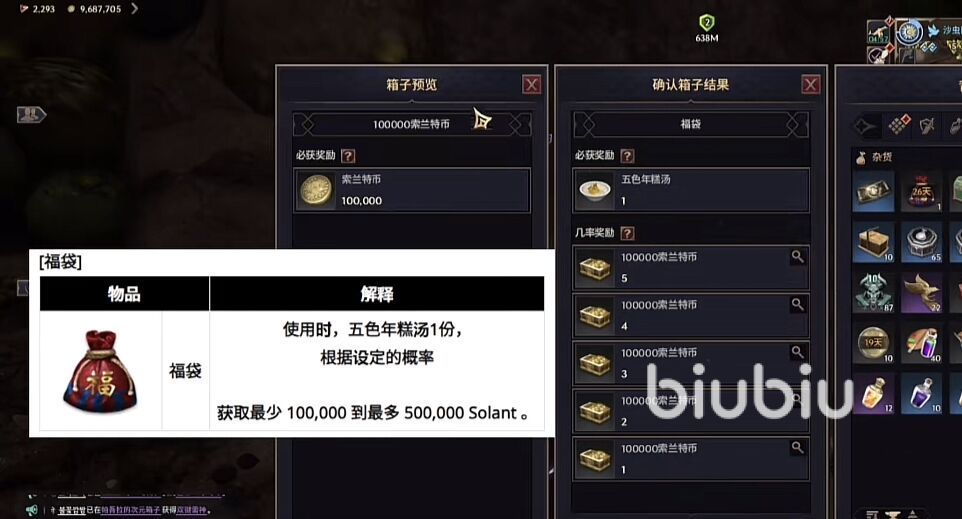 打开会获得一个福袋奖励,开福袋会获得游戏金币,最低有10万,最高有50万。注意获得的金币是不会提示的,可以看左下角的系统消息里面,就知道开出什么了。