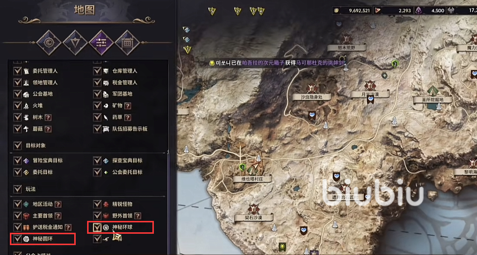 之后就可以到地图上找到这个神秘圆环,注意看下图的图示标志,就是一个小圆的符号,在地图上找到后直接过去。当然野外也都会有,建议可以去怒目荒野与灰爪林交界的附近地区寻找。
