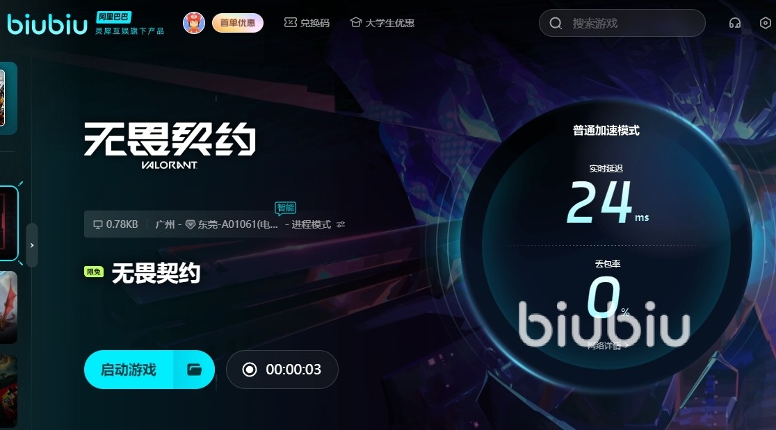 2024年09月13日 19:01 来源:暗影向小拉达很多玩家对于这款游戏很是喜欢,其中的战术射击玩法也是得到了许多玩家的认可,本期小编主要是来说说无畏契约加速器的选择,若是朋友们对于此很是感兴趣,也希望能入坑其中来进行体验的话,小编认为biubiu的表现就很合适,能助力玩家获得更加稳定的效果,各位有想法就一起来看看吧。
