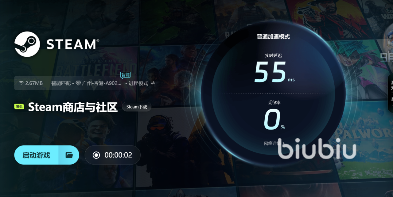 其实steam的功能十分的全面,除了给大家提供游戏资源之外,这里还有很多社区功能和在线服务。大家可以在这相互的交流经验和心得,创建特色的话题社区,独特和便捷的管理系统让很多玩家甚是喜爱,突然间的无法登录确实挺让人头疼的,这个时候小编建议大家尝试下biubiu加速器,操作简单性能全。