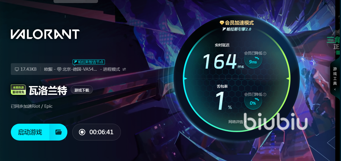 现在biubiu正好有注册新用户免费体验24小时的活动,先体验再充值会员,为大家降低试错成本。目前biubiu开放了瓦洛兰特限免权限,在【【【9月30日-10月10日】】】期间限时免费加速游戏。如果是大学生用户的话通过验证以后还能享受学生充值折扣,并且所有的用户只要输入【biubiu不卡顿】还可以得到3天免费加速时长,是不是很给力呢?