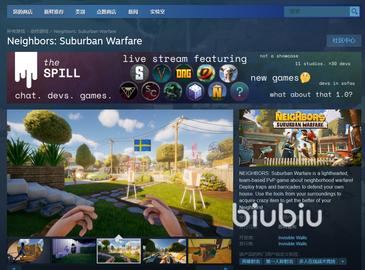 邻居郊区战争的原版名字叫做《Neighbors: Suburban Warfare》,需要在steam客户端或者网页版的搜索框中直接复制粘贴这个名字,稍等一会就会显示它了。不过游戏暂时还没有公布价格和上线时间。现在是有测试版可以申请资格的,等不及玩到的话不妨一试。