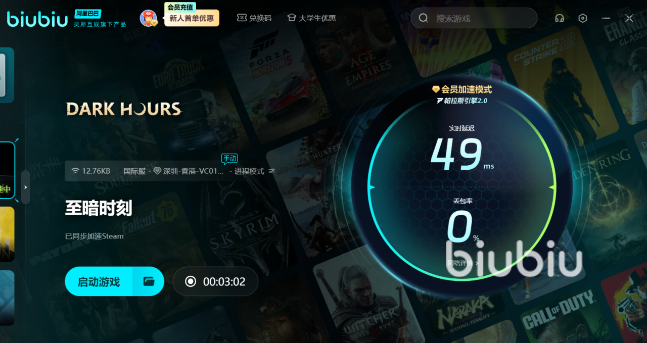 现在,新老用户都可使用【biubiu不掉线】的兑换码获得3天的免费加速时长!新用户注册登录后,还将额外获得24小时的免费全平台会员加速。搭配兑换码使用,你总共可以获得长达96小时的免费加速时长!这足以让你在《劫盗惊魂夜》中尽情享受流畅无阻的游戏体验了。