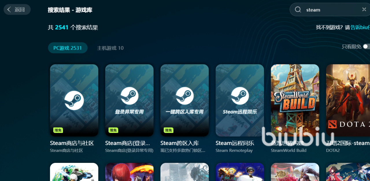 基本上玩各类游戏都少不了对steam这个游戏数字平台的使用,由于平台提供的各种功能越来越多,导致现在使用的使用经常有加载慢的情况,对此使用biubiu的网络加速技术就可以改善,而且目前对steam商店的加速是限免的。