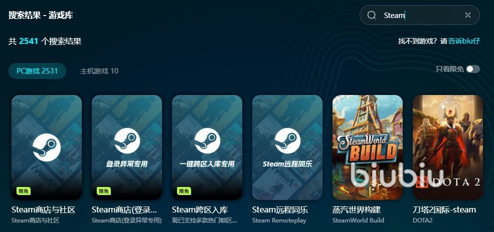 直连Steam大多时候是可以登录的,但打开商城有时候却会报错,不是每一次都会报错,有时候等待半天也能进入,但为了可以更稳定的浏览商城,大多时候玩家们都会使用加速器。这里推荐大家试一试biubiu加速器,不仅加速效果好,福利也多。关键对于steam商店还提供了限免加速,登录的时候出现异常也可以使用该加速来解决。