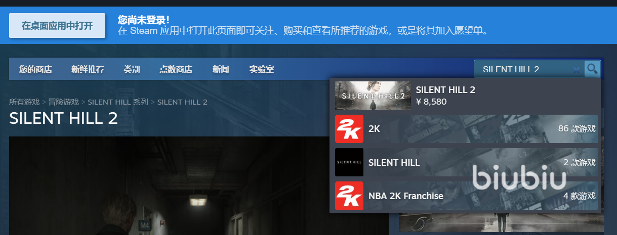 注册好账号后,在Steam首页可以直接点击或搜索《寂静岭2》的英文名,“SILENT HILL 2”进入商店购买页面。到这里时可以直接进行购买的,但是支付的时候,外区账号的支付方式大多以美元为主,如果你需要充值,可以在某宝上找到多种充值方式,不妨去研究一下。