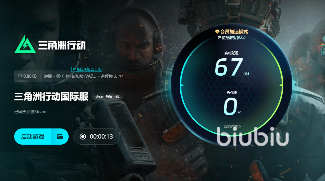 以上便是三角洲行动国际服加速器的全部介绍了,大家在游戏体验过程中,若是发现自身的网络出现了卡顿,或者是延迟十分的高,就应该考虑去通过biubiu去进行优化了,如此也是为了确保自身的游戏运行能够稳定,喜欢就去点击链接来下载吧。