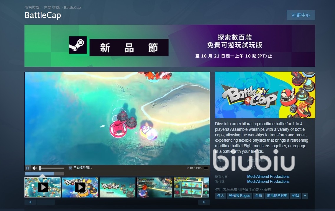 我们登录Steam之后,可以使用游戏名称瓶盖战舰进行查找,或者利用英文名BattleCap也是可以找到这款游戏的。各位现在登录,虽然没办法玩到正式版本,毕竟游戏还没有正式上线,但是可以玩到试玩版本的,内容一样很丰富的。