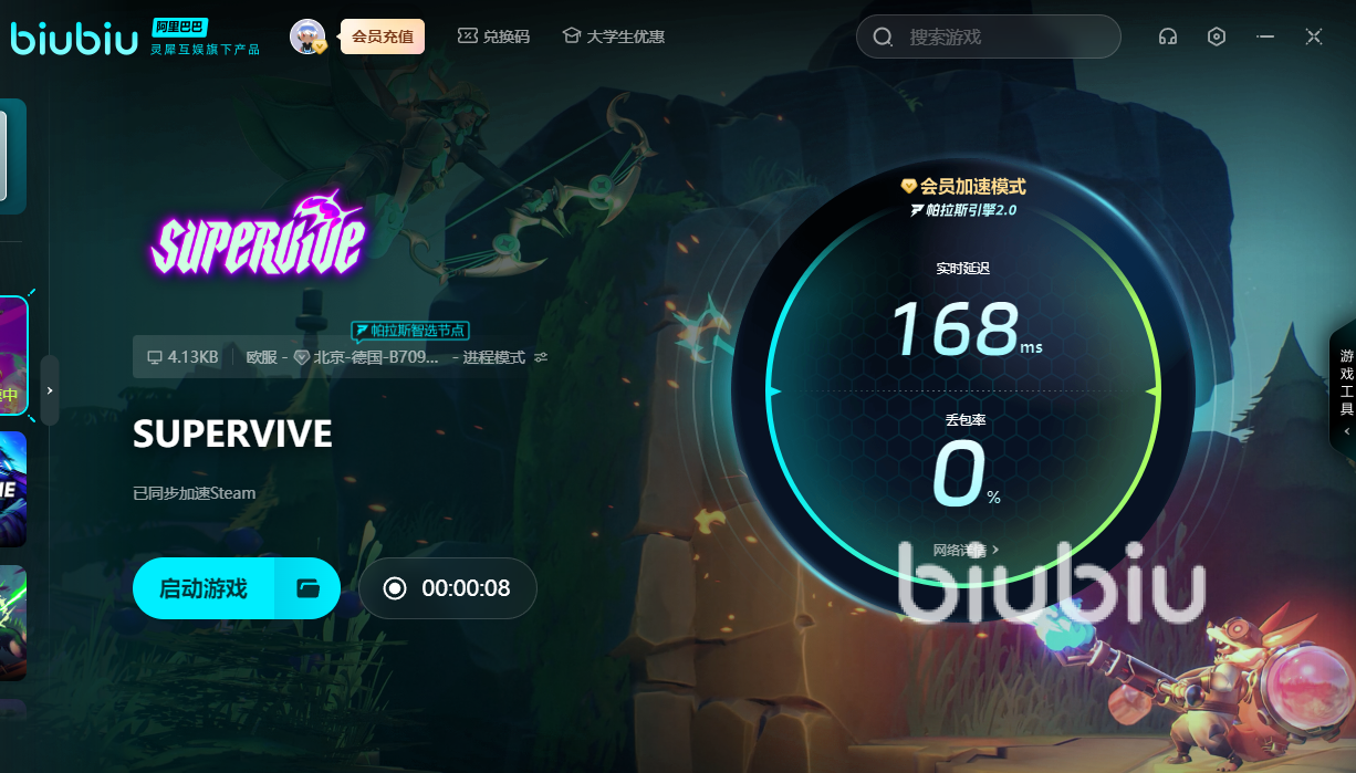 SUPERVIVE黑屏闪退卡顿怎么解决?这时小伙伴们完全可以使用biubiu,经过加速后就可以有效杜绝这些问题出现。毕竟作为一款求生类型游戏,最担心的就是遇到网络问题。很有可能会让自己直接输掉比赛,所以加速后才能让大家放心!