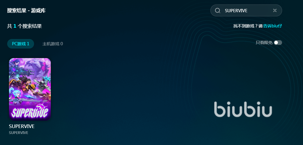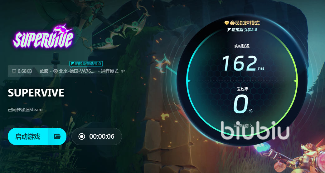 biubiu不仅支持对steam商店加速,效果还是有目共睹的,大家能够成功参加steam新品节试玩离不开biubiu的帮助。它将提升后的网速同步到steam上面,这样大家打开steam商店就很顺利,玩游戏的时候也不用担心卡顿掉线了。现在在biubiu里就能搜索到SUPERVIVE加速资源,一键开启加速十分方便。