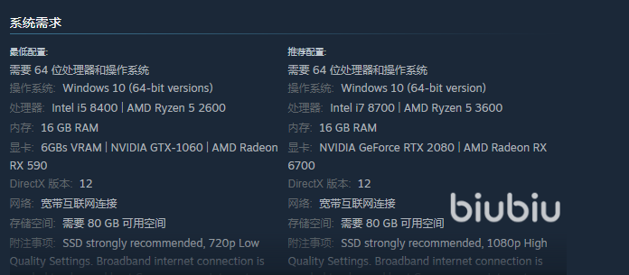 而推荐配置方面需要我们对部分的硬件进行升级,比如将CPU升级到i7的8700,显卡升级到支持光追的2080,不过游戏的具体硬件要求我们还是要以官方的公告为准,有兴趣的玩家可以持续关注该游戏。