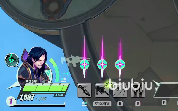 角色的移动方式是我们按下WASD进行上下左右的移动,鼠标左键是普通攻击,右键则是使用第一个小技能攻击。因为大部分地图上都有断开的道路,因此按下空格键进行跳跃是非常频繁的一个操作,而其中游戏最核心的一个玩法便是当我们跳到空中时长按空格键可以打开滑翔伞进行大距离的跃时,并且可以用鼠标左键进行方向的转向。在滑翔过程中血条旁边会出现一个圆形,里面的黄色覆盖面积会随着时间慢慢减少。当黄色部分消失的时候,我们也会从滑翔的状态下落到地面,因此一定要注意时间不要出现摔死的情况。