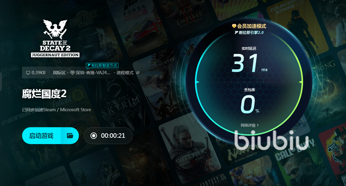 biubiu对腐烂国度2这款游戏可以进行针对性加速,而且针对玩家日常玩的热门、冷门的上千款大中小型游戏也支持加速。玩家只需要下载biubiu加速器,就可以通过其简单的操作界面加速多款游戏,避免重复安装多款加速器的麻烦。这款加速器还能实时监控网络状态,一旦发现延迟或波动,会自动切换到最优节点,确保玩家在高压战斗时不会因网络问题拖累队友,提升了整体的游戏体验。