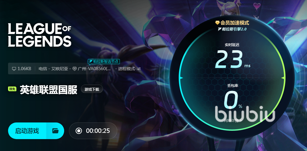 好在现在有了biubiu,它的加速技术专业又正规,完全不用担心被封IP的问题,而且网速可以达到电竞级别,玩家们可以尽情发挥自己的实力,将激情和汗水在英雄联盟的舞台上。biubiu不仅提速显著,还能维护好网络的稳定性,很多小伙伴每次上分都是一连玩几个小时,不管游戏时间有多长,biubiu都会让网速保持在稳定的频率内,减少信号波动影响大家操作。