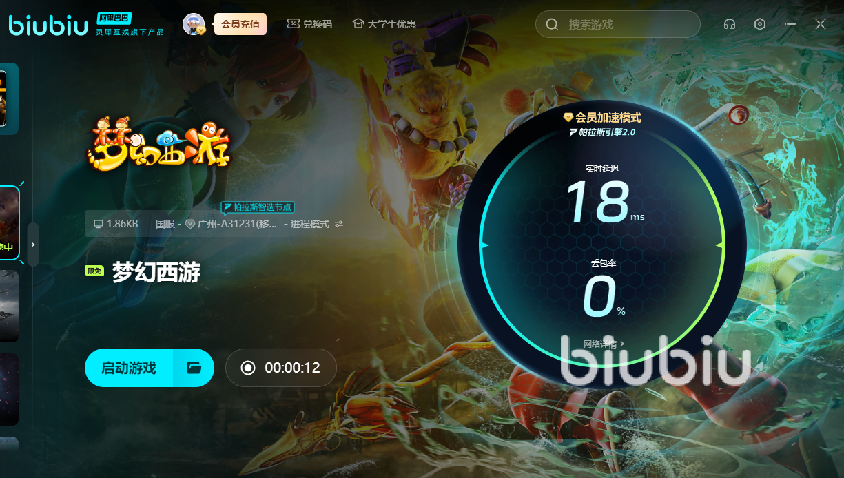 梦幻西游中的在线人数一多,大家就很难挤入服务器里面。使用biubiu之后,便可轻松优化网络,即便再爆满也能让你及时登录进去。目前该游戏加速限免,不过你想要玩其他游戏的话,新用户可领取24小时的免费加速。另外新老用户也可输入【biubiu不卡顿】,便能额外领取三天免费加速。若是与其他人对决时卡顿,那就会让你更快输掉比赛。用了加速器后,便可避免对决途中卡顿,更容易拿下比赛。