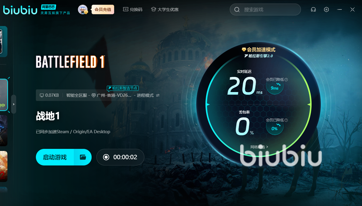 战地1是款国际型游戏,所以暂时还没有国服上线。都是大家想要与其他地区的玩家交战的话,要使用biubiu才行。这样就能优化网络,让你获得进入异世界战场的资格。新人的话可领取24小时的免费加速,此外新老用户可通过【biubiu不卡顿】,就能额外获得三天免费加速。在如此长的时间内,足以让你成长,并击败更多的对手。要是战争途中卡顿,那你很可能无法顺利发育,就会被其他路过的敌人消灭。这时用了加速器后,自然能告别卡顿,可安心发育,期待变得更强!