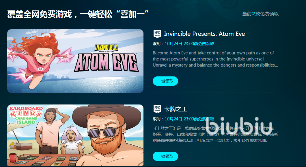 小伙伴们没事的时候还可以来逛一逛biubiu的免费游戏领取,不仅有喜加一还有steam游戏跨区入库,喜加一里每期都会更换赠送的游戏,这些游戏免费领取,系统还会详细分享领取方法。在领取的过程中如果遇到任何困难,都可以向biubiu客服反馈,客服会帮助大家解决问题领到喜欢的游戏。