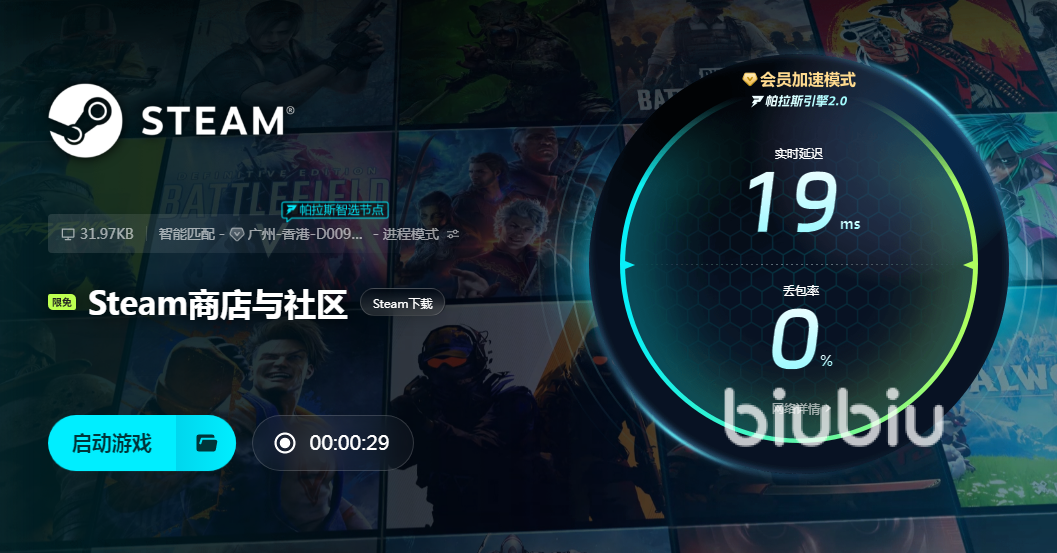 大家需要先在biubiu里找到steam商店和社区的加速资源,然后开启蓝色加速按钮,网速会同步到游戏平台上面,大家后续玩游戏和汉化游戏就不会卡顿了。biubiu使用的都是独立的游戏加速线路,不会占用掉其他设备的网络,而且它的节点线路都是安全正规的,不会导致大家IP被封,小伙伴们可以放心使用。现在输入小写【biubiu不卡顿】还可以领到三天免费加速,所有的用户都能领取,免费加速期间不限制启动次数,大家想怎么玩就怎么玩。