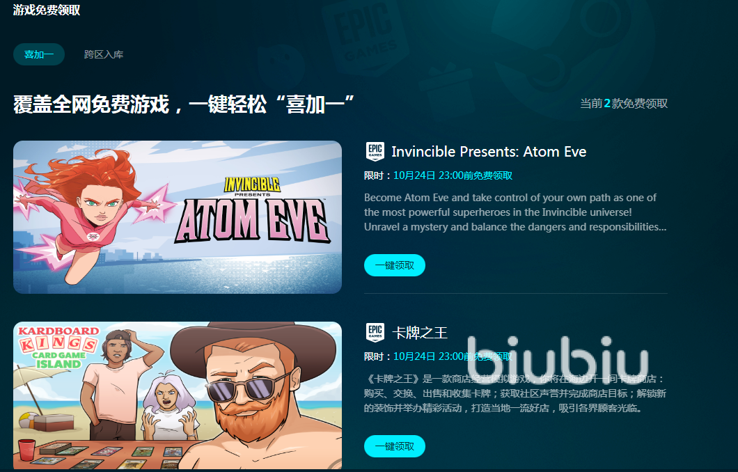 大家还有机会在biubiu里领到其他的游戏,快来关注biubiu喜加一,每一期都有免费游戏赠送给大家。小伙伴们如果有什么想玩的游戏找不到,或者是需要平台添加哪些游戏资源的话,可以反馈给biu仔,biu仔尽力满足大家的需求。