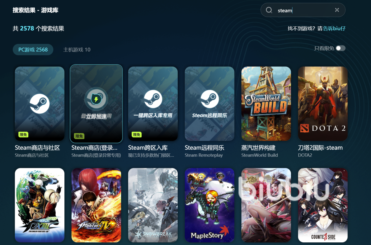 biubiu加速器应运而生,是一款专业的优化神器,特别是针对steam服务平台连接而生,有了它之后可以让浏览器变得更加顺畅。客户端到路由器是需要经过多个节点的,这个环节当中出现了问题就会导致很多情况发生,biubiu核心的技术可以有效的帮助大家解决这一点,根据使劲情况自行切换,最终找到最适合玩家的线路。