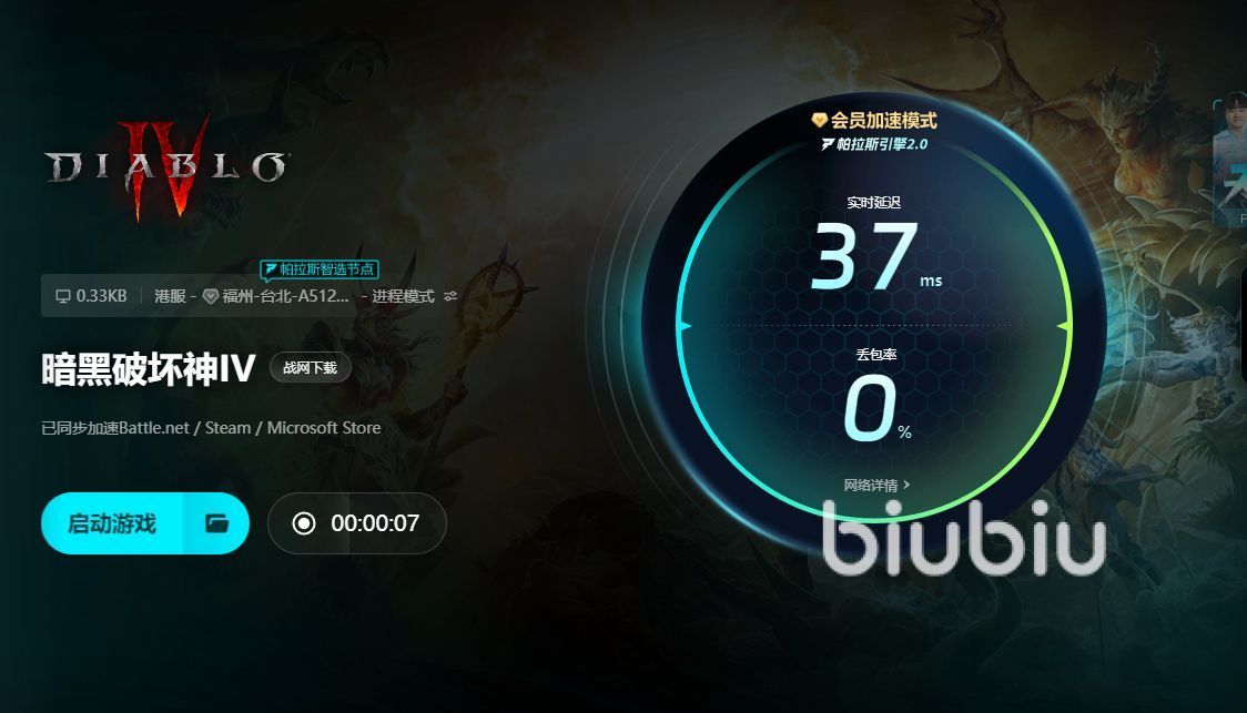 2024年10月25日 21:03 来源:破魔旦赤丸应各位玩家的要求,本期想要给大家带来的是暗黑4延迟高解决方式介绍。游戏会给玩家们提供很多的职业,通过自己的喜欢去筛选从而搭配相应的装备,技能的不断升级会让角色战力变的更加强悍,不过游戏的刷怪区域比较小,很多玩家在刷资源的时候遇到了网络问题,这个时候可以考虑下biubiu这款加速器。