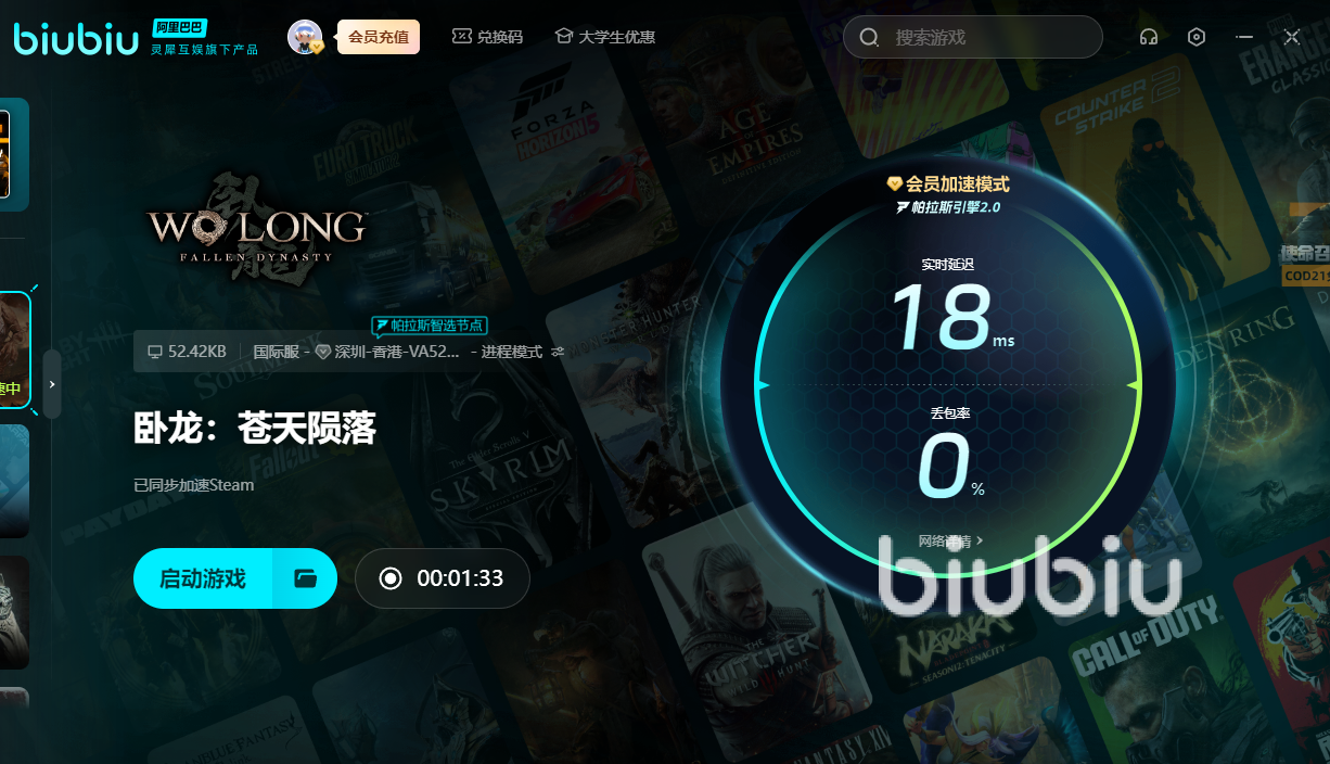 如果大家遇到卧龙闪退怎么解决?这时可查询一下自己的网络是否出现问题了,这时只需开启biubiu。便可获得稳定网络,让你告别网络难题,无需自己费力地设置本地网络。便能一直玩下去,避免坑了你的队友和其他玩家。