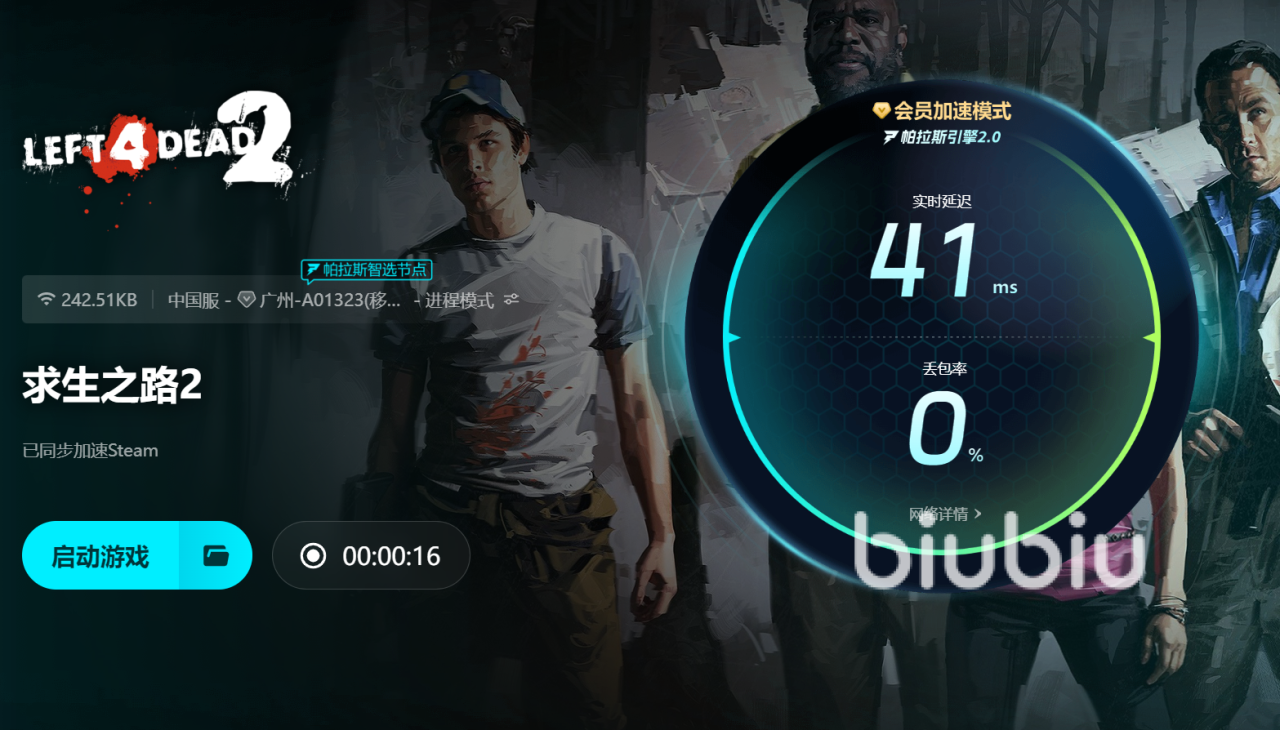 像求生之路2之类的僵尸游戏,在市面上还是很多的的,但是大部分都是需要联机游玩的,但是一部分玩家们的网络不太好,玩这个联机游戏基本上会出现卡顿问题,有的甚至闪退无法登录,那就可以使用biubiu加速器来缓解这类问题,并且新人在注册后便获24小时免费加速,以及新老用户使用兑换码【biubiu不卡顿】可获3天免费的使用权哦。