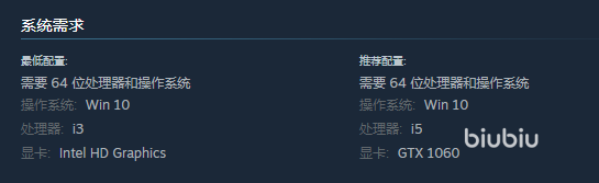 根据steam页面信息可以看到该作的配置其实不高的,大部分主流设备都能运行,需要注意为游戏下载留出充足的存储空间和网络,如果内存占用过多也是影响电脑速度的,都会出现慢速的问题,如果已经关掉了其他占用网速的软件仍然不能提速,那就是宽带的速度比较慢,这种情况最快捷的解决办法就是打开biubiu加速器为下载专线进行提速。