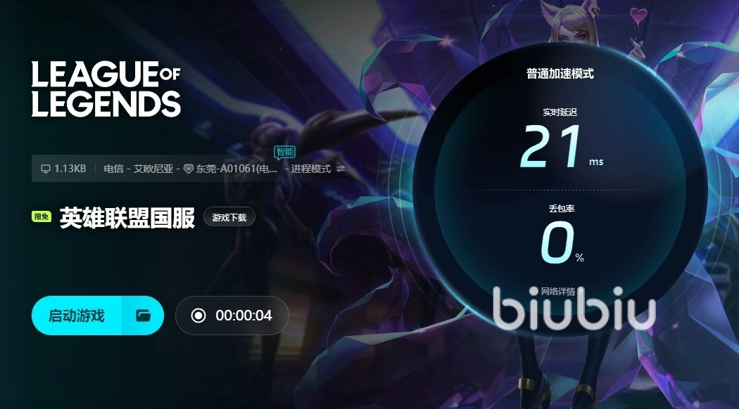 作为一款专线级的加速工具,它的效果方面还是非常突出的,其专属的内网传输效果,能确保玩家的游戏网络环境足够稳定,尤其是朋友们在体验英雄联盟这类竞技玩法的游戏时,其对于大家的时机把控非常重要,好在biubiu就能为大家带来帮助,让用户不用再担心会遇到类似方面的问题。