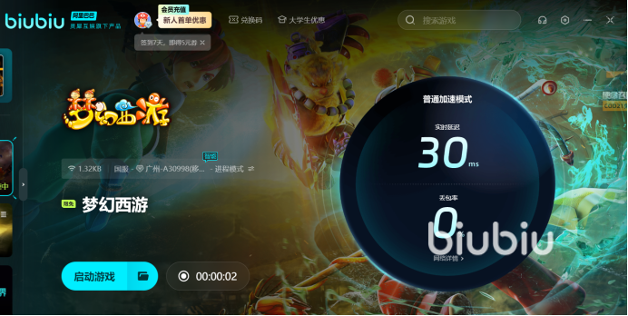 梦幻西游的玩法丰富且多元。除了传统的任务和战斗外,游戏还加入了诸如结婚系统、家园系统等社交元素,让玩家在游戏中也能感受到现实生活中的情感交流。此外,游戏内的经济系统也相当成熟,玩家可以通过摆摊、拍卖行等方式进行物品交易。而biubiu加速器的出现,则进一步优化了玩家的游戏体验。首先,它的新人注册可享免费加速24小时服务,让新手玩家可以在没有网络烦恼的情况下快速融入游戏;其次,无论是新用户还是老用户,只要使用兑换码【biubiu不卡顿】,即可获得额外3天的免费加速服务,这对于希望长期享受稳定游戏环境的玩家来说无疑是一个好消息。
