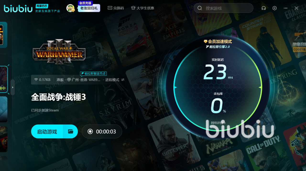 好玩的游戏必然要配上给力的加速器,如果你从未使用过biubiu,现在还有新人注册的福利活动等着你。新用户点上方链接下载注册,成功登录后享受平台赠送的免费加速24h会员体验时长。另外,不论是新用户抑或是老用户,使用小编分享的兑换码:【biubiu不卡顿】,也能够额外获3天免费加速。而且两项福利可叠加,高达96小时的会员体验足够让你痛快玩战锤3与龙同行mod。如果大家觉得加速效果不错,再充值会员也不迟。