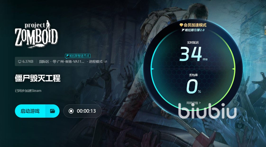 僵尸毁灭工程掉帧解决办法非常简单,我们只要点击几下鼠标就行了,在下载完biubiu之后,找到游戏然后开启加速,网络优化好了,自然各种故障就消失了。喜欢玩游戏的小伙伴们,如果遇到了其他类型的网络问题,也可以尝试用biubiu开启加速服务去解决哦,效果非常快速的。