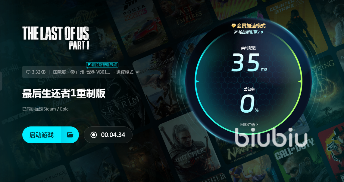游戏的加速也很方便,大家直接打开平台软件,搜索游戏名字就可以找到这个游戏的加速服务区间了,后续如果还加速的话,登录界面就可以直接在自己的主页上找到自己之前加速过的游戏,非常方便,不需要再去搜索,所以如果大家之前没有用过加速软件的话,用biubiu也可以快速掌握使用方法。