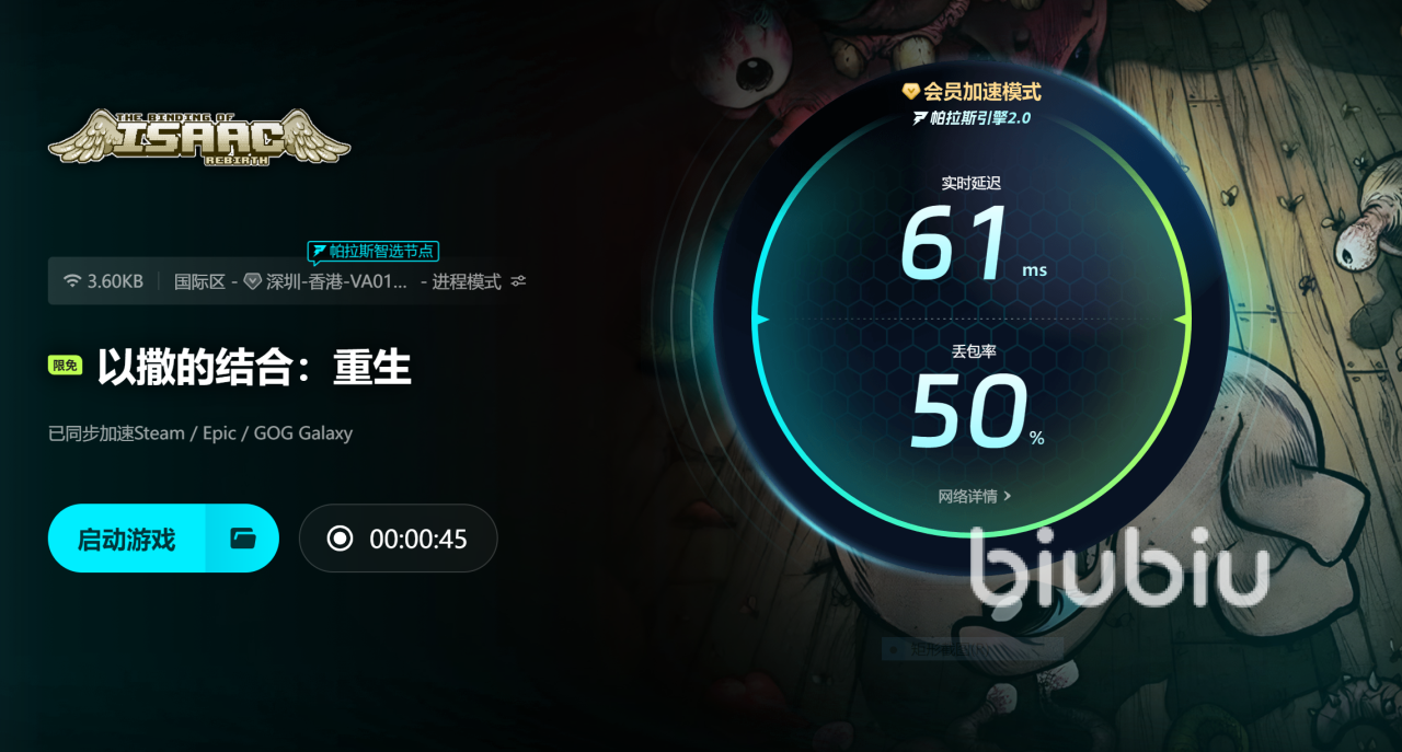 biubiu加速器可以说是电竞级的加速工具了,解决游戏卡顿、延迟高、闪退的问题简直是小菜一碟。在以撒的结合的游戏过程中需要玩家不停操控主人公对战,中间如果突然闪退,一是影响游戏体验,二是影响过关。biubiu加速器凭借强大的加速引擎,优化数据传输路径,可以显著提升网速,维持网络环境稳定,无论是国内热门游戏还是海外大作,都能获得显著的加速效果。