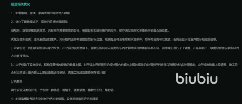 建造相关的玩法也是有优化的,增加了家园的地面,屋顶以及家具表面的网格对齐系统,在建造的时候更省心,并且建造模式下摆放规则也调整了,判断摆放的建筑能不能更好的吸附上去,这样各位就更容易进行施工了。