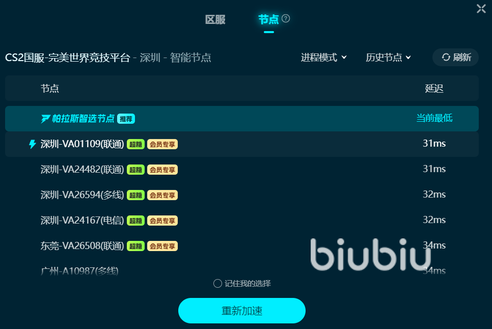 实用的Biubiu有电竞级专线,可以优化CSGO国服以及国际服多个区,比如北美服、日韩服、欧服等,助你无网络障碍与全球各地的高手pk。Biubiu能够精准定位CSGO服务器所在地,检测全线多路径游戏数据、专属高速网络通道直达,大限度突破传输的物理壁垒。