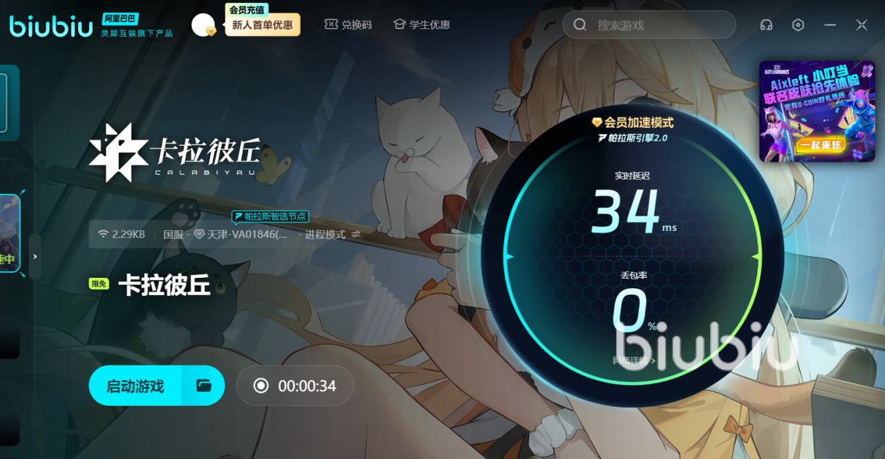 总之,如果遇到了上述提到的一些问题,一定要用上的神器就是Biubiu了,不仅能大幅提升传输反应时间,还能让你在竞技场上更加游刃有余。记得每次进入游戏前都要先开启它,再打开游戏的客户端,就能够确保网络环境的稳定性,做到万无一失了。最后一起在《卡拉彼丘》的世界里,成为真正的次元英雄吧。