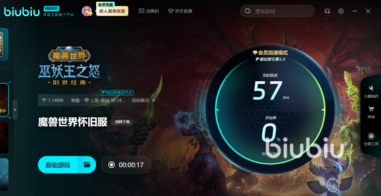 biubiu加速器的亮点价值在于其出色的加速效果和稳定性。它采用先进的加速技术,智能识别游戏服务器,为你提供最优的加速方案。同时,biubiu加速器还支持多种平台,无论你是在PC上还是在移动设备上玩《魔兽世界》,都能享受到它带来的加速效果。