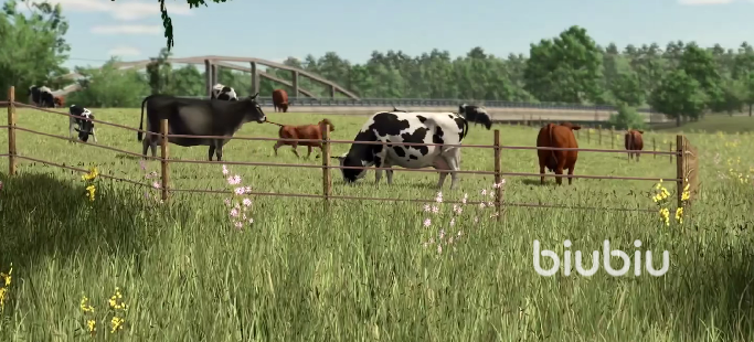 这次的更新预告是让人惊喜的,因为都是跟各种小动物有关,做的也很真实。所有展示出来的内容,都会实装到游戏当中,可以看到围栏里面是有很多健硕的牛的,品种也多,有生产牛奶的花斑奶牛,还有耕地常用的黄牛,也有一些可以生产优质牛肉的黑牛。
