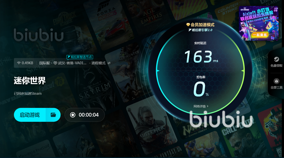 迷你世界其实并不是一款只有自己才能进行建造的游戏,它还适合多人联机进行互动,大家邀请朋友在一起联机,共同进行探索、冒险和建造。具有着较强的社交互动性,当多名玩家一起合作完成一个庞大建造项目时,将会享受到合作乐趣,这比自己单人游戏要更有趣很多。另外游戏还会不断推出新内容、活动以及各种功能,保持游戏新鲜感,这些都需要占用更多资源。为了能够让游戏里不再卡顿,biubiu加速器是大家都需要的软件。现在注册新账号会直接赠送24小时加速时间,所以不用担心功能性能方面的问题,先感受之后再做决定。另外还有一项不得不说的福利,大家只需要将兑换码【biubiu不卡顿】填写进兑换栏中,就能直接兑换得到三天加速时间。