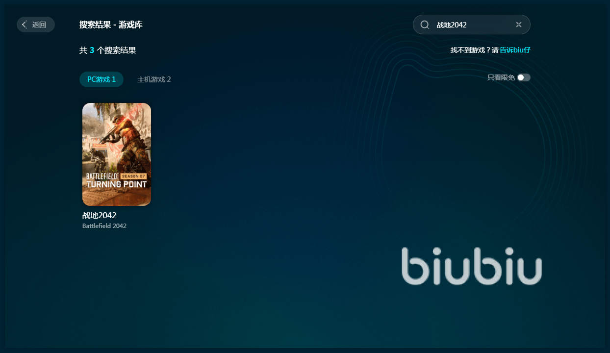 最后biubiu还有一个优点,大家一定要掌握,那就是它在应用方面的多平台优势,不仅仅是在pc端有所应用,还可以看到这款战地2042是有很多主机版本,这些主机版本,都能够直接搜索到,而且连接之后,就能够进行加速优化服务。这也是成为pc端会员之后的福利,一款账号就能够应用于多个不同平台,这对于喜欢多平台体验的玩家来说,绝对是一个不小的优势。毕竟在其他主机平台,也存在着相应需求,现在一键通通解决,自然就不需要再寻找其他工具了。