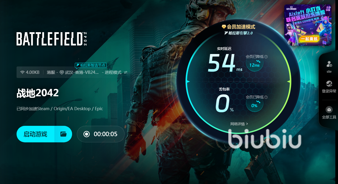 在看完小编介绍的这些内容之后,相信大家就已经清楚战地2042闪退不报错是什么原因了吧,出现各种网络问题其实并不稀奇,因为游戏服务器经常会出现各种意外情况,但对于玩家来说,掌握了biubiu使用方法并成为pc端会员后,这些小问题就可以轻松解决了。