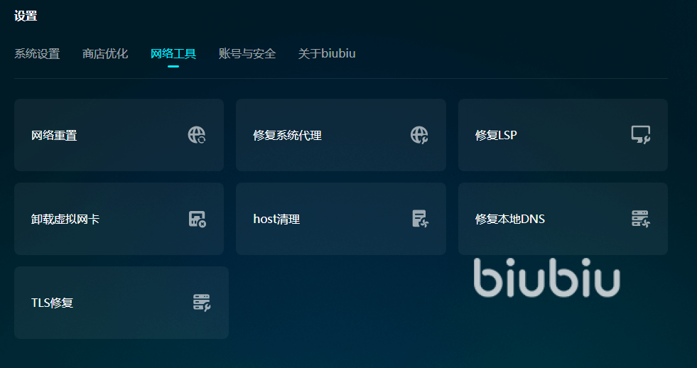 通常情况下pubg闪退也跟电脑的网卡也有亲密的关系,biubiu里面的工具正好可以帮助大家优化电脑环境,修复已经故障的系统代理的同时还可以清理卸载无用的虚拟网卡,电脑网络环境焕然一新,玩游戏更不会闪退了。biubiu既能优化电脑又能提升网速,大家可以放心来玩绝地求生了。
