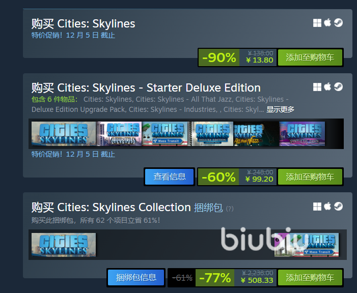 建造类游戏爱好者的最爱,没什么能比亲手打造一个繁华都市更吸引人,只需13.8即可拥有。
