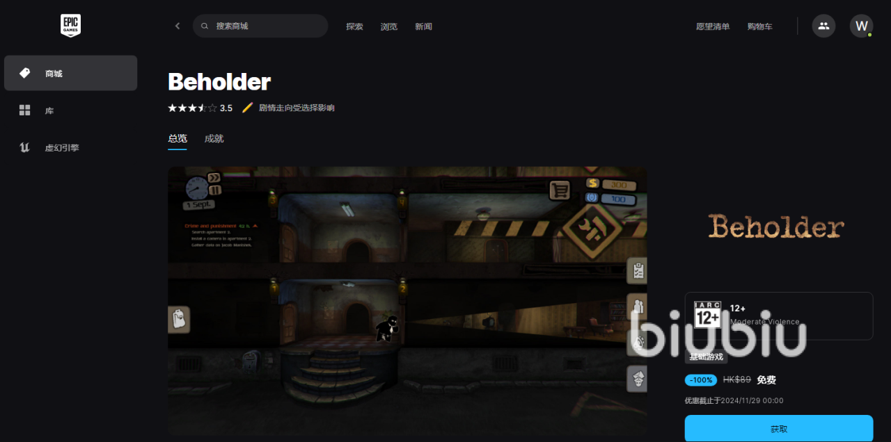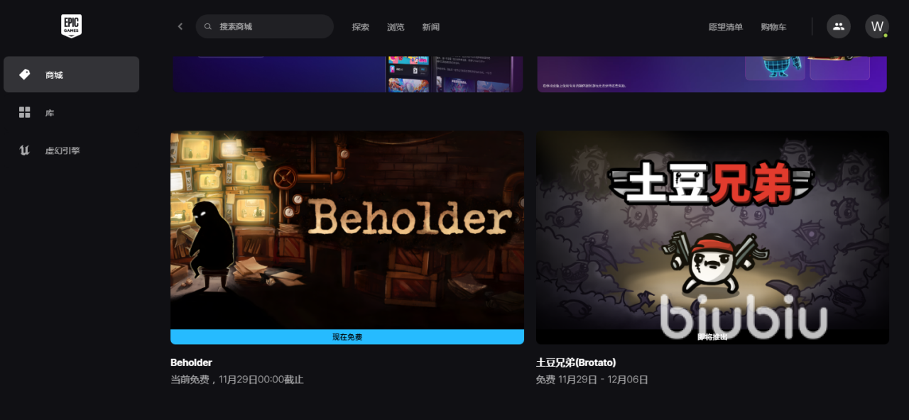 这里小编先来解释一下喜加一的含义,指的是在EPIC的游戏商店中,玩家可以免费获得一款游戏,这样玩家免费就可以使自己的游戏库再增加一款大作,所以被称为喜加一。要清楚的是,喜加一项目并不是固定,而是随着时间段在不断进行更新,每个时间。都会有1~2款免费游戏提供给玩家,更新一般是以周为单位。只需要登录EPIC账户,进入平台中,找到免费游戏栏目后,就可以选择要领取的游戏项目,点击获取完成下单,免费入库进行游玩了。该活动并不是选择一些冷门游戏免费提供,很多都是目前热门作品,甚至还有3a大作赠送,所以质量很高。目前喜加一免费的是Beholder,是一款剧情走向受选择影响的游戏,这款游戏只持续到11月29日。下面要更新的是土豆兄弟,免费的时间为11月29日一直到12月6日。