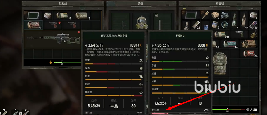 游戏中的枪械种类丰富且容易获取。每个大区域内的敌人通常都使用同一类型的武器和弹药,比如前期都是GP37和AK74、喷子等。因此可以通过击败敌人来获取他们的。当武器的耐久度不低于40%时,你可以将其卖给商人以换取金钱;而耐久度低于40%的武器则建议丢弃或作为废品处理。