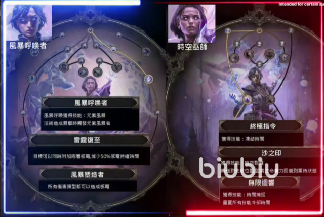 法系也可以选,使用魔巫就拥有了更多的范围伤害技能,比如风暴呼唤者以及时空巫师这两种分支,各自都有强力的技能搭配方式,提高伤害。前者拥雷霆复制可以造成双倍雷霆伤害,带上风暴塑造者就可以让所有伤害类型都造成感电伤害,清怪效果好。后者的沙之印技能给予角色很强的自保能力,而且无限回溯技能可以重置所有角色的冷却时间,这样就可以保证持续输出了。