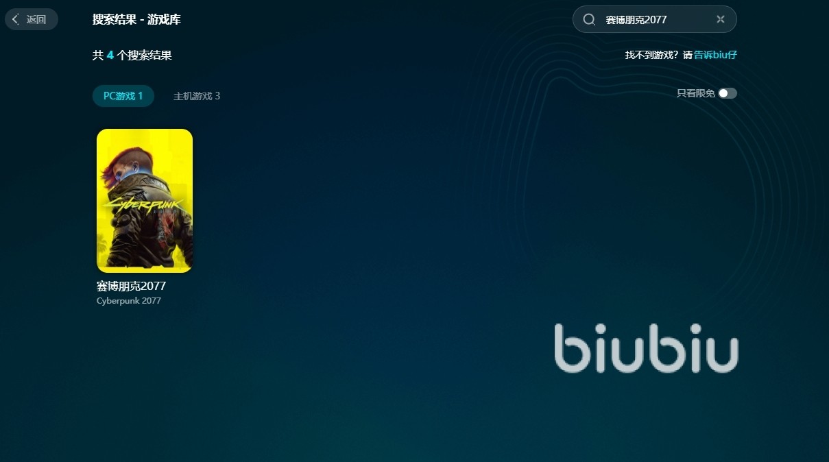 根据官方目前消息,今年steam平台秋季促销正式开始,玩家们可以在秋季促销活动中以4.5折的优惠入手赛博朋克2077这款游戏,它的原价是298元,折后价为134.1元,可以说这个价格真的非常优惠了,对这款游戏感兴趣的小伙伴千万不要错过,不过也有不少玩家反馈自己在购买游戏的过程中会遇到购买失败或者是根本找不到游戏的情况,这都是因为当前网络不稳定所导致的,想要有效的解决,大家不妨使用biubiu加速器,这款加速软件能够为我们提供更便捷的加速服务。同时,里面也涵盖了丰富的游戏,就拿这个赛博朋克2077举例子,我们可以直接搜索游戏名称对其进行加速,然后无论是在,平台购买游戏还是体验游戏都会变得更加顺利。