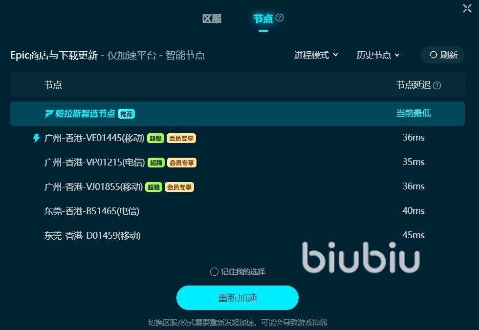 很多玩家都选择信赖biubiu,这款加速工具有电竞级别的线路加速,可以智能选最佳网络加速通道,帮你优化网络连接Epic,减少延迟以及网络波动情况出现。